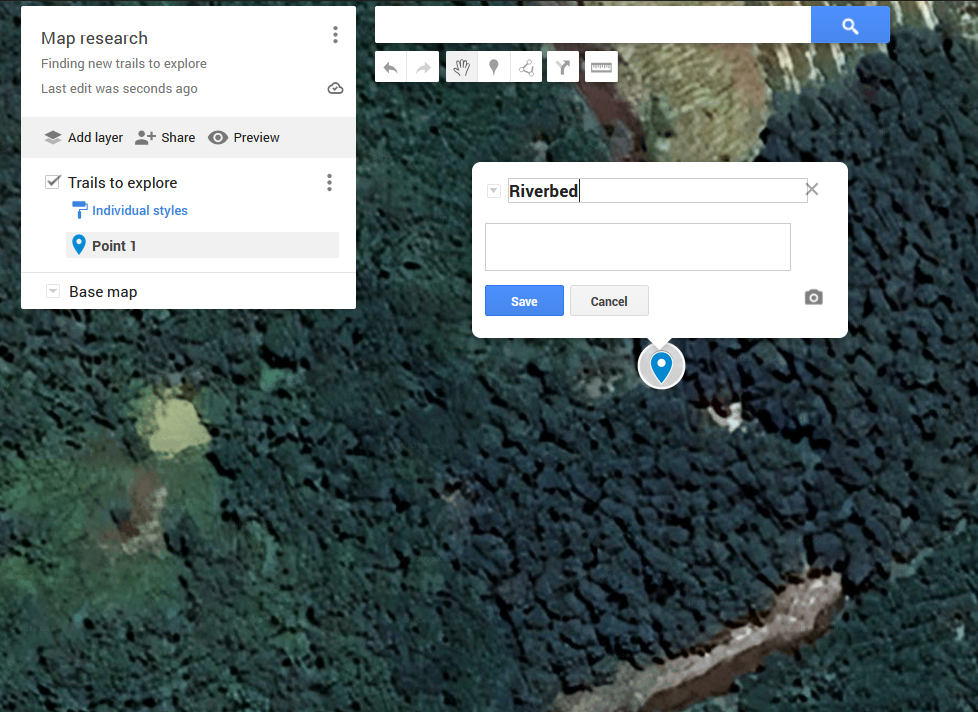 We now again go to the same river bed as we did on MyMaps and place a waypoint to save the location.